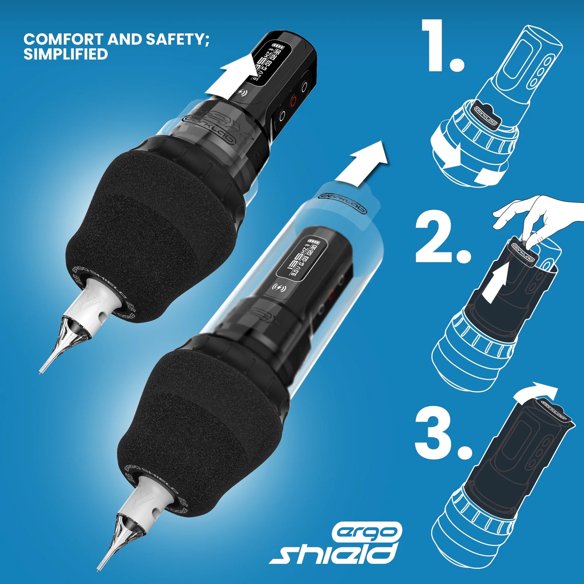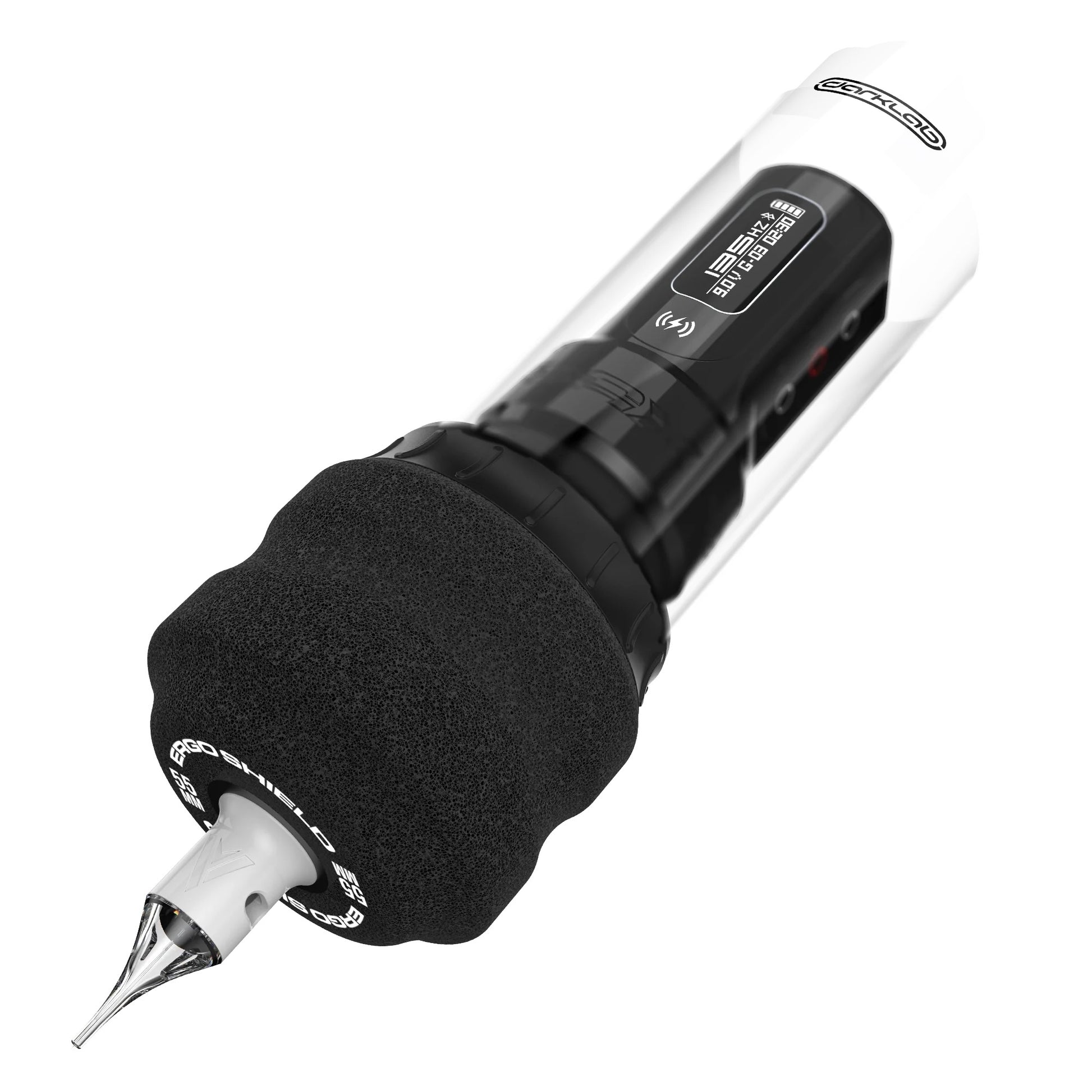 They come in a variety of diameters and work with any of your favorite FK Irons wireless machines + most standard tattoo needles. You can also adjust needle depth easily without twisting or tearing your machine bag thanks to the ErgoShield’s free-spinning barrier system.